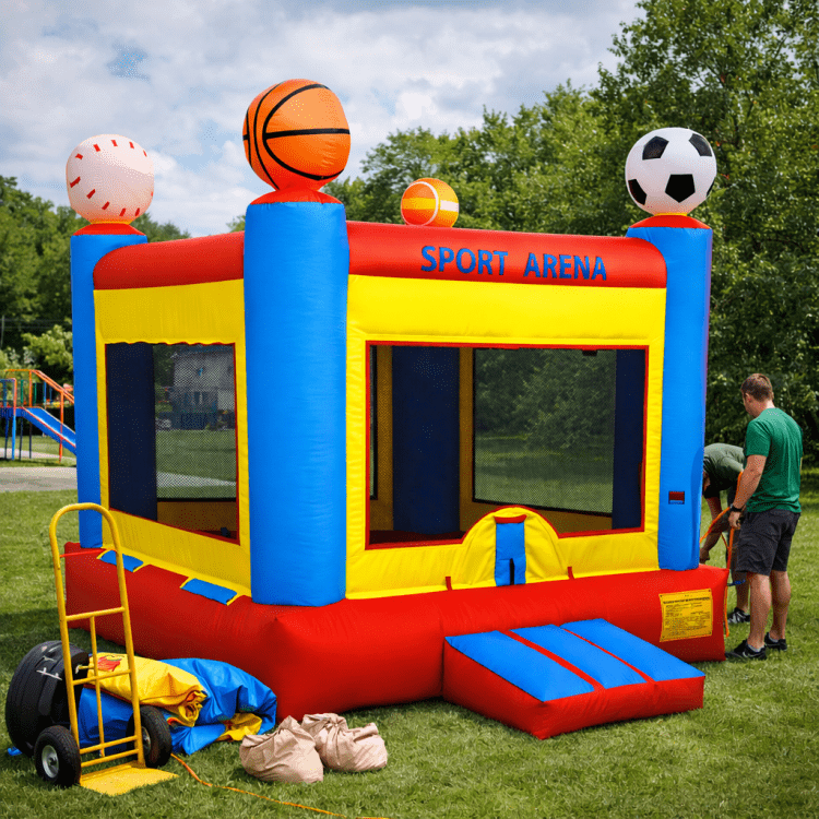 - OCCUPANCY: A maximum of 5-6 kids of equal size at one time for bounce houses, and 1 person at a time for slides is what most inflatable manufacturers recommend.